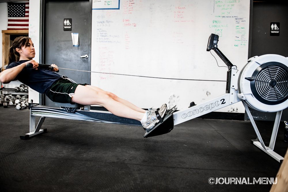 Lilly gets full extension on the rower at CF Fenway.