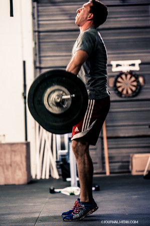 wod: thrusters at 75#, chest to bar pull ups of death. too many rounds with one at a time, but glad i got all 7 in during the minute!