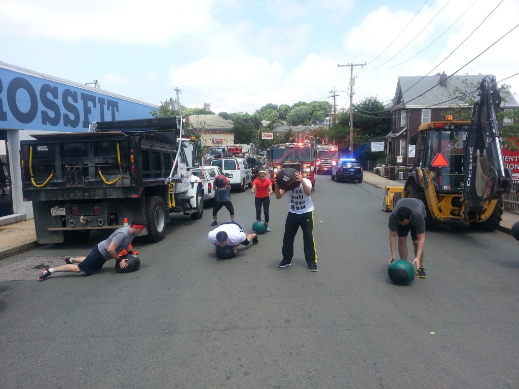 Last Friday, the city of Somerville was nice enough to block off all of Prospect Street to give us a great venue for the “My Buddy” workout. How often do you get to play with your buddies out in the middle of the street? It was so cool.