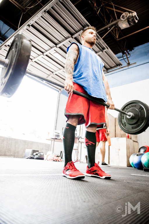 Doug’s 1rm deadlift is 300#. Â His first working set of 10 might be around 165# or so. Â He’ll then pop on something like 245# for a heavy (but not maximal) single so his body can feel this weight and brace accordingly. Â When he goes for his next set of 10 (at say, 185#), his body will still be prepping for that 245# load it just felt and chances are his bracing will be spot on. Â He might then hit 260# for a single before going for his last set of 10 at 205#. Â Choose wisely, get after it, and we’ll see you on the other side.